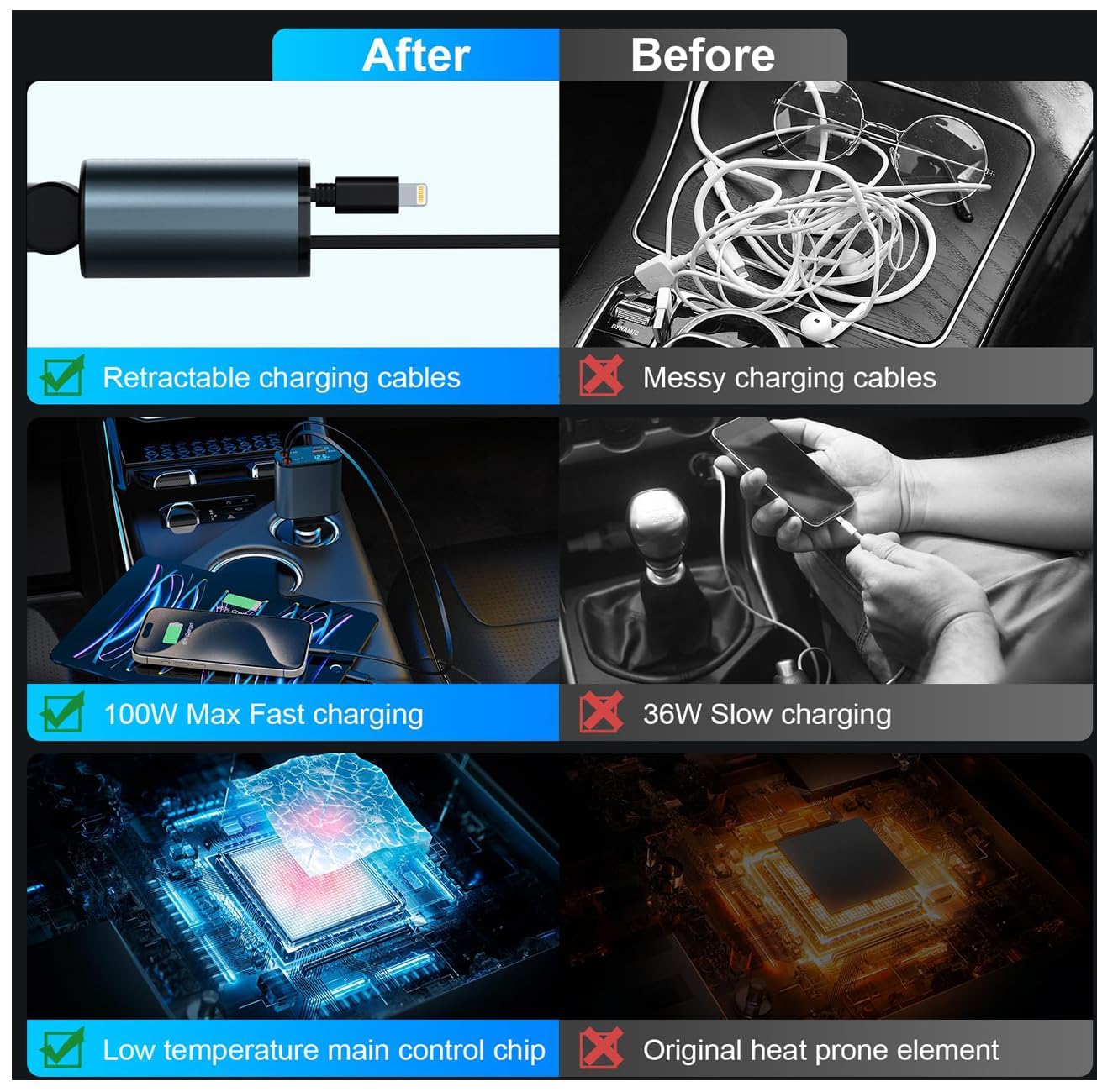 - Retractable Cable System: No more messy cables—just pull to extend and retract smoothly.